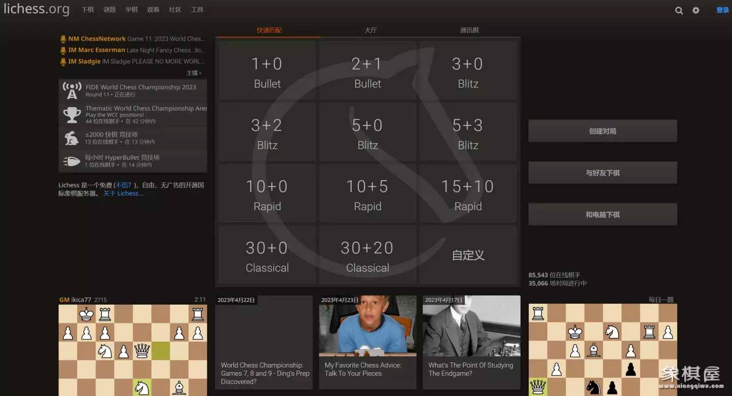 六、在线体验地址:https://lichess.org/