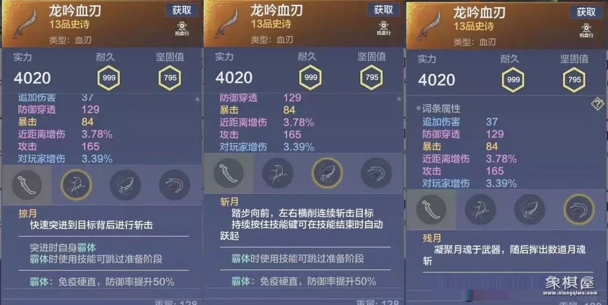 往往一把武器是否沦为真正的玩具,有时候区别就在于橙色的技能。而血刃比较幸运的是残月这个技能在伤害上比较高。
