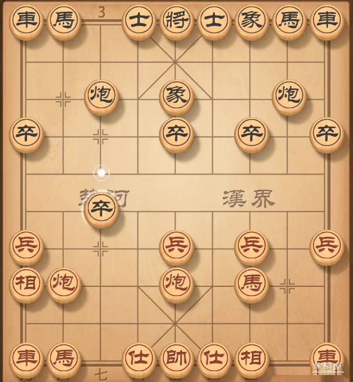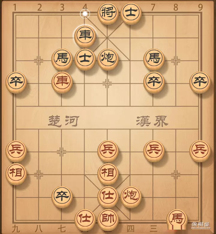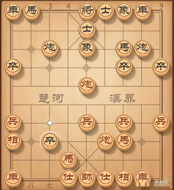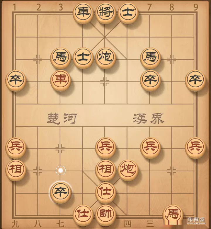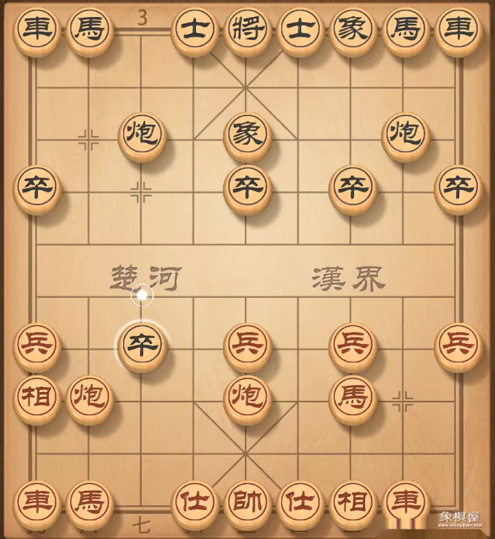 4. 相七进九 卒3进1 红棋飞相正着,至少不能走兵七进一,不然打一将,车没有了。