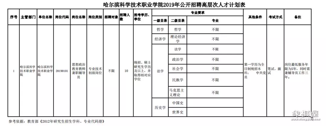 哈尔滨科学技术职业学院招聘10人