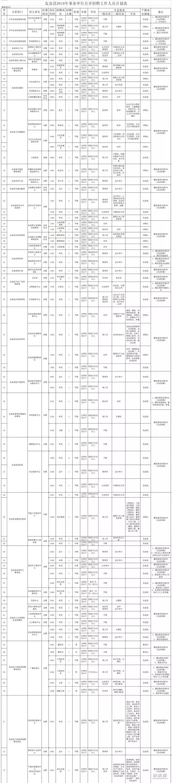 双鸭山友谊县事业单位招聘80人