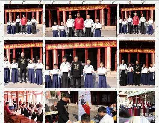 这场拜师收徒仪式,是在广东罗定的元老赛期间举行,不单有拜师收徒,现场,还展开了特级大师的车轮战,立刻下起了指导棋。