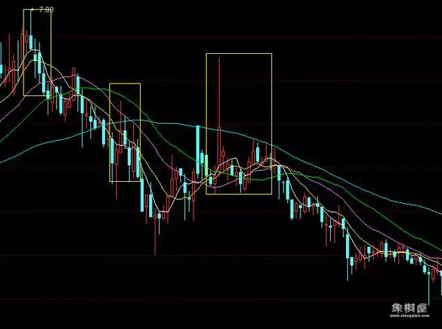 4、出现在下跌途中的假仙人指路通常作为诱多图形,通常会在向上刺破重要阻力位后快速回落。
