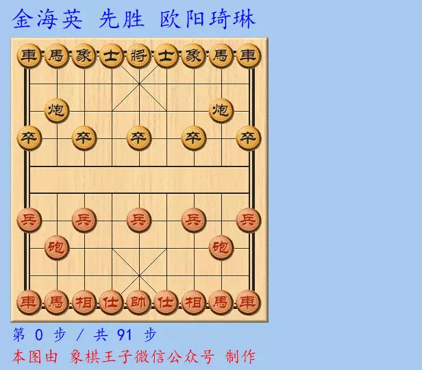 这盘棋,金海英执红棋先手,布下飞相阵,欧阳琦琳来势刚猛,应以跳右马转左中炮。
