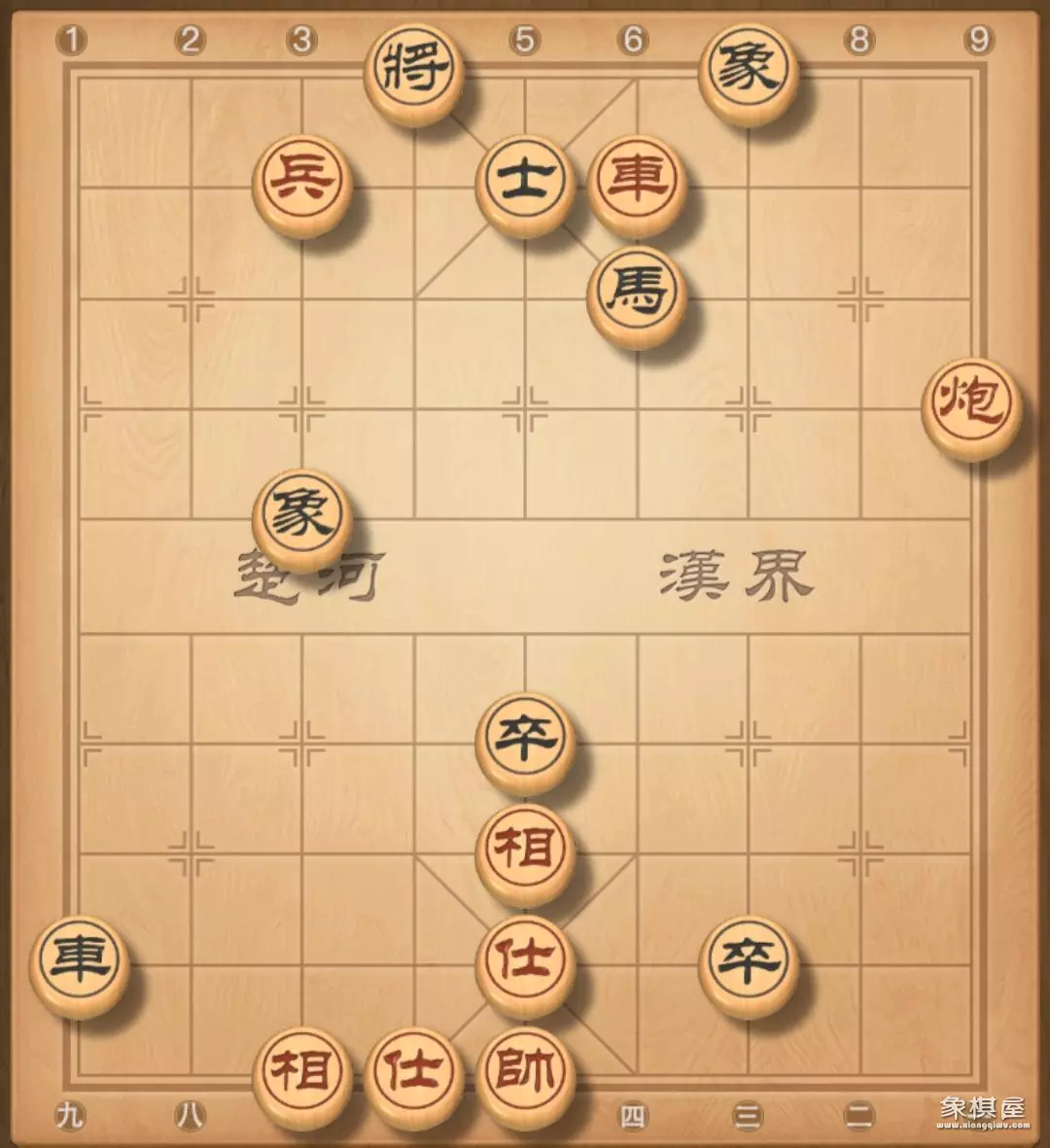 还是一样的方法,先看黑棋,进6卒或进8车,红棋无解,红只有一将到底,方可破局!此局面,有平车和平兵或进兵三种思路,通过除法,选择最优,这里就体现心算能力的重要性了,这里就不一一分析了,大家知道了方法,用这样的方法去练习心算,这样会有大进步。这里就直接上招法: