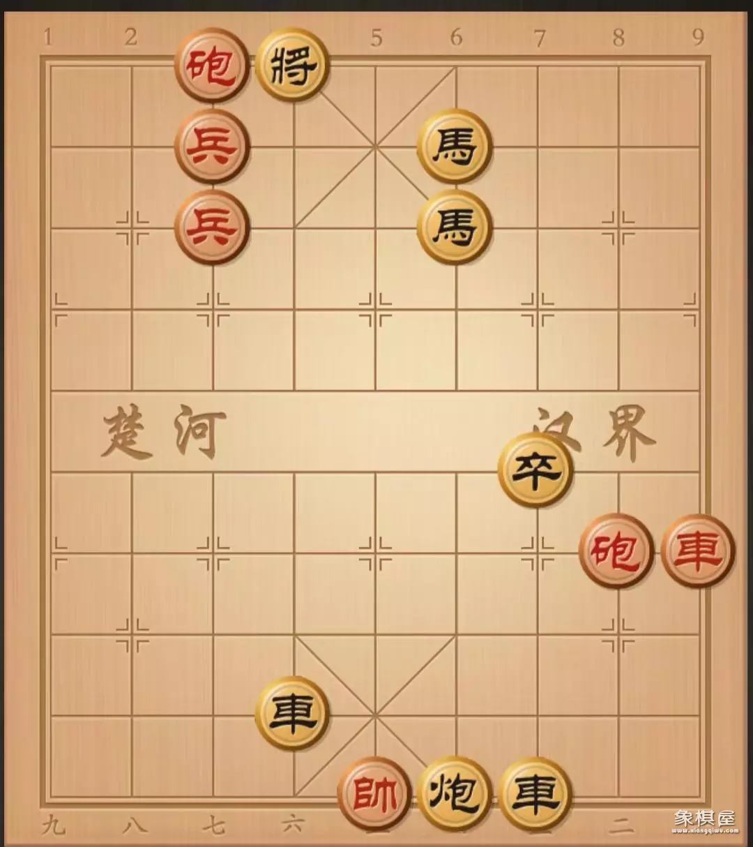 在很多新手眼里,本局就只有三个子:红车、黑双马。红车将军,黑垫马,红车吃掉将军,黑马再垫上,红车再吃掉继续将军,赢了!