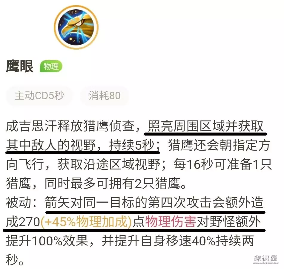 3、在功能性方面,虽然成吉思汗没有后羿那样的远距离开团能力,但是他所提供的视野如果能运用得当的话,对于队友、自己的帮助,并不逊色于一个开团技能。在功能性这一点上,成吉思汗要领先绝大多数射手。