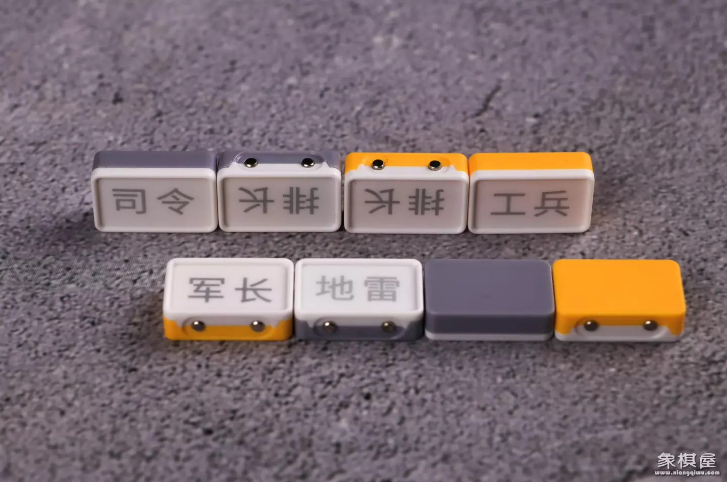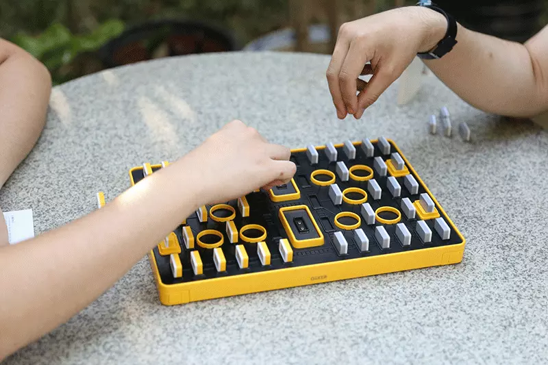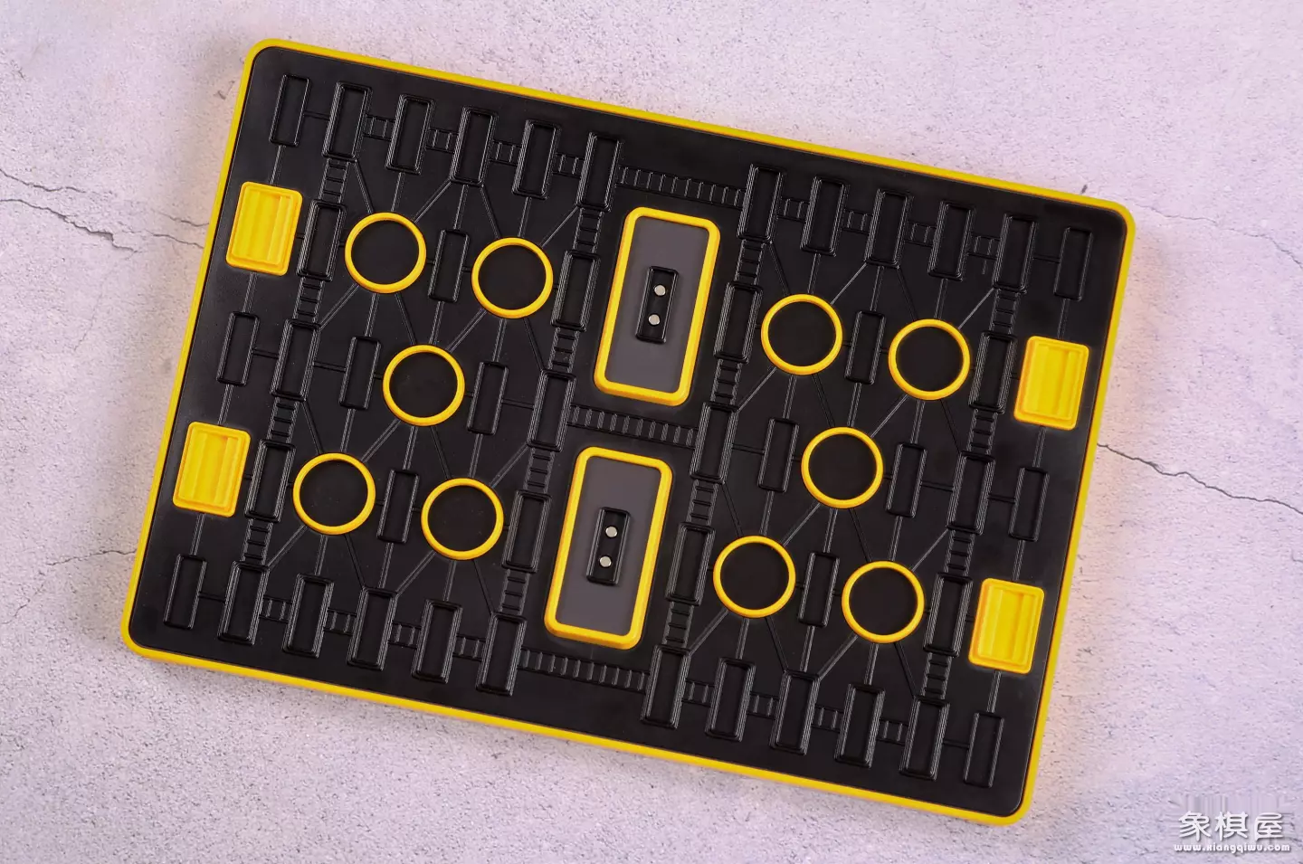 整个棋盘为矩形、对称式设计,与传统的军棋棋盘相似,通过黄、黑配色,使得棋盘的设计感十足。