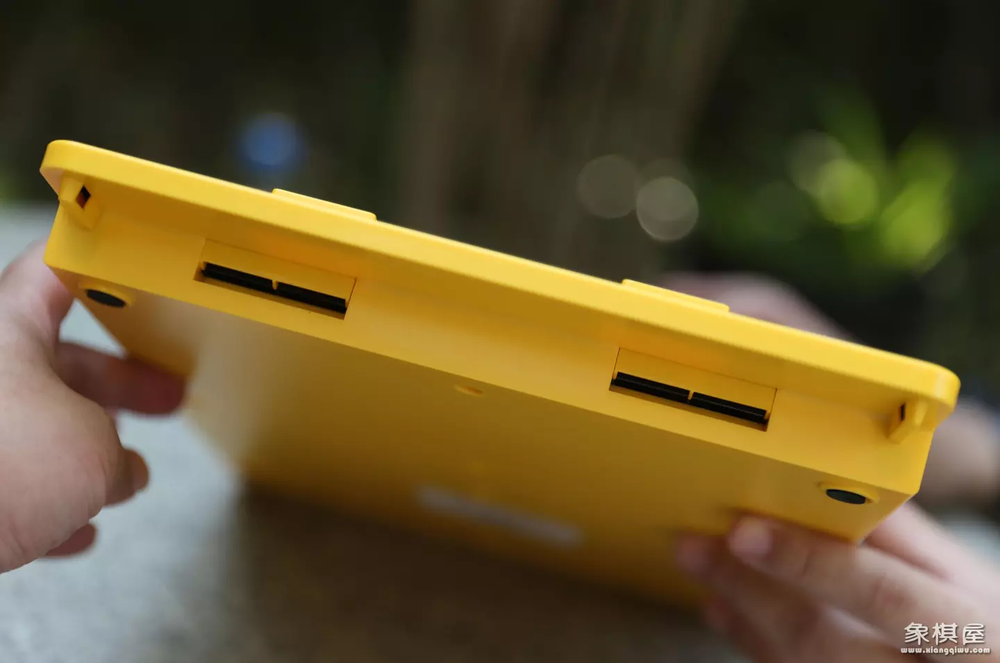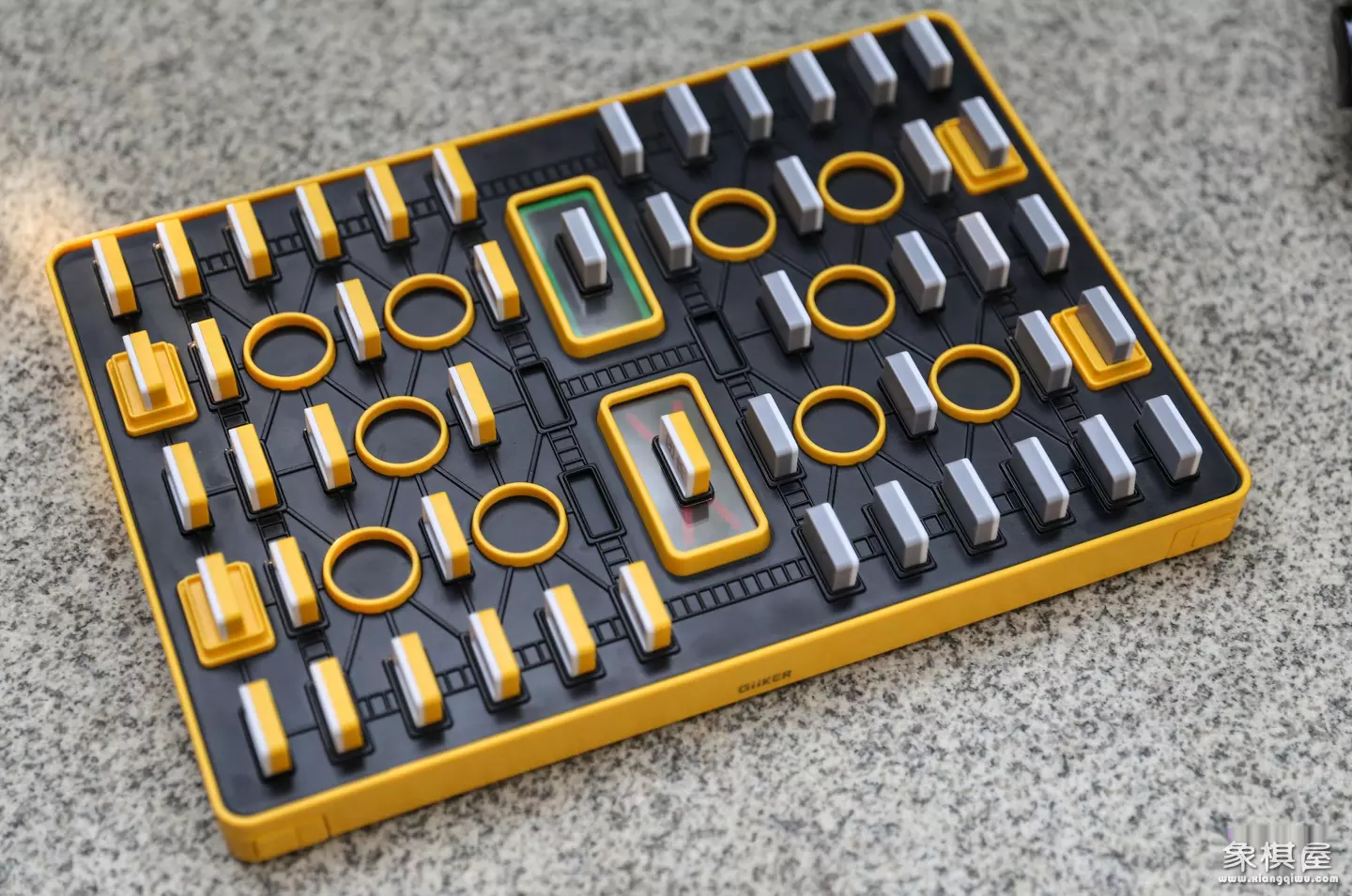 棋盘两侧有一个按压式的按压开关,方便我们取下左右两侧的隐藏式棋子仓,两个棋子仓内分别拥有灰、黄两种颜色的棋子,分别代表不同的队伍。