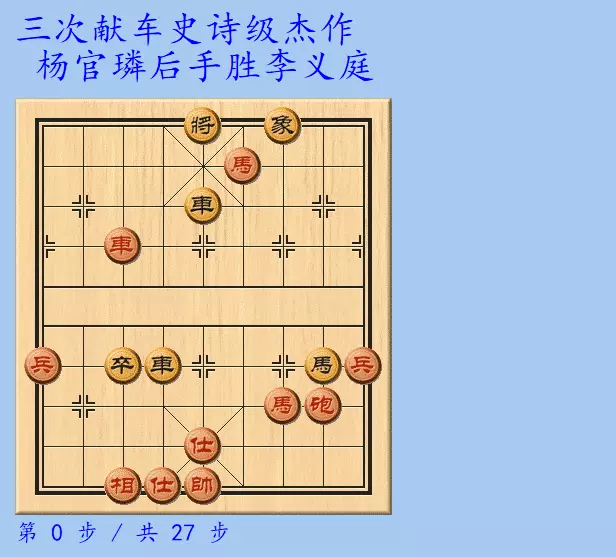 9.将5退1 前马退六 10.将5平4 车七平四