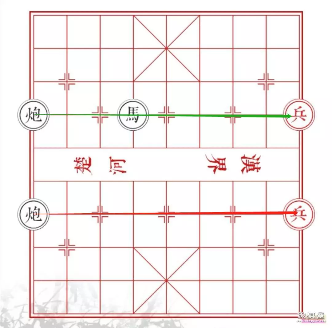 炮(黑色):行进方式为隔着一个棋子攻击另一个棋子,除此之外所有的情况中,炮都不可以进攻。