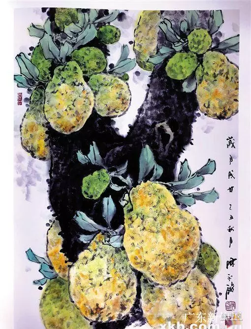 陈永锵:我是木棉树下长大的孩子,木棉开花很壮观,而且掷地有声。我14岁拜梁占峰老师学画的时候,在他家里厅堂就挂着一幅他画的木棉,并题了一首诗“愿祝人生似木棉,凌云百尺气冲天,花开映日红如血,絮落纷纷暖大千。”这首诗引起了我对木棉人格化的联想。后来我自己也写了一首颂木棉的诗,“顶天立地自成姿,沉醉东风花醒迟;三月群芳闹渐已,丹蕾十万吐高枝。” 我画花鸟画不是拟人化,而是人格化。