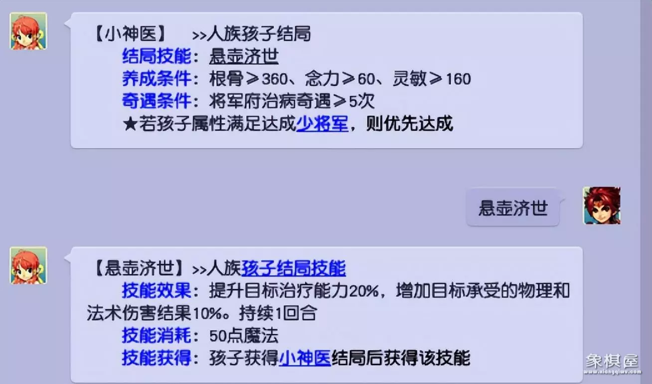 结局技能是孩子养成之后,会自动获得的专属技能。