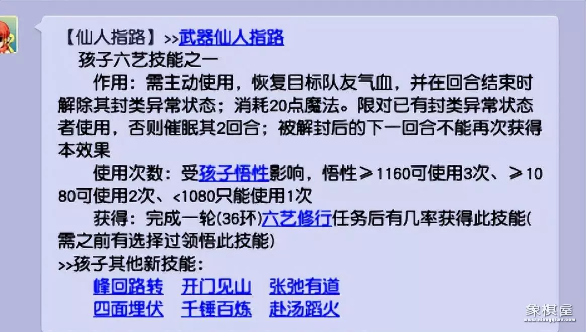 单人解封+回血,六艺的悟性值影响到使用次数。
