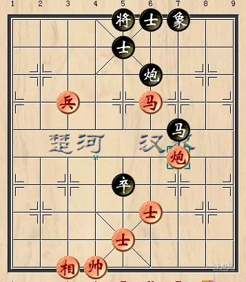 中局之上,黑方3路卒巧妙过河,对红棋形成反钳之态。
