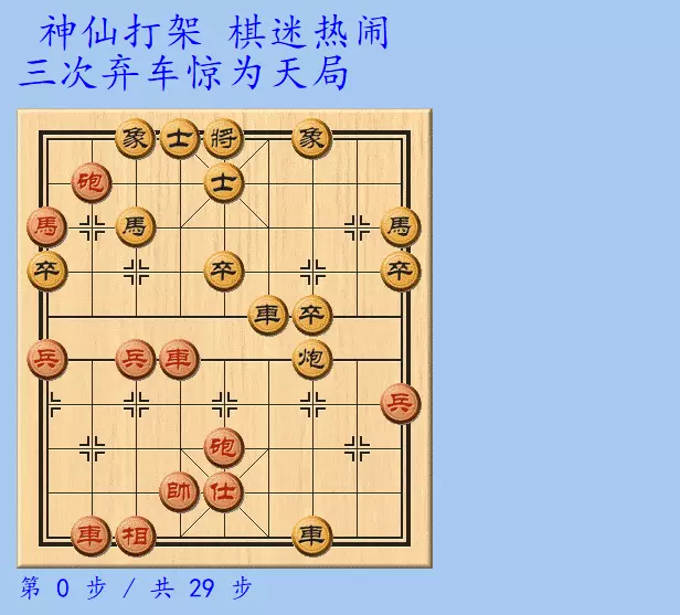 赛事: 第四届全运会象棋预赛 上海胡荣华 先胜 北京傅光明日期: 1979年5月5日地点: 苏州红方: 上海胡荣华黑方: 北京傅光明结果: 红方胜----------------------------------------------------1. 相三进五 马8进7 2. 马八进九 炮8平9
