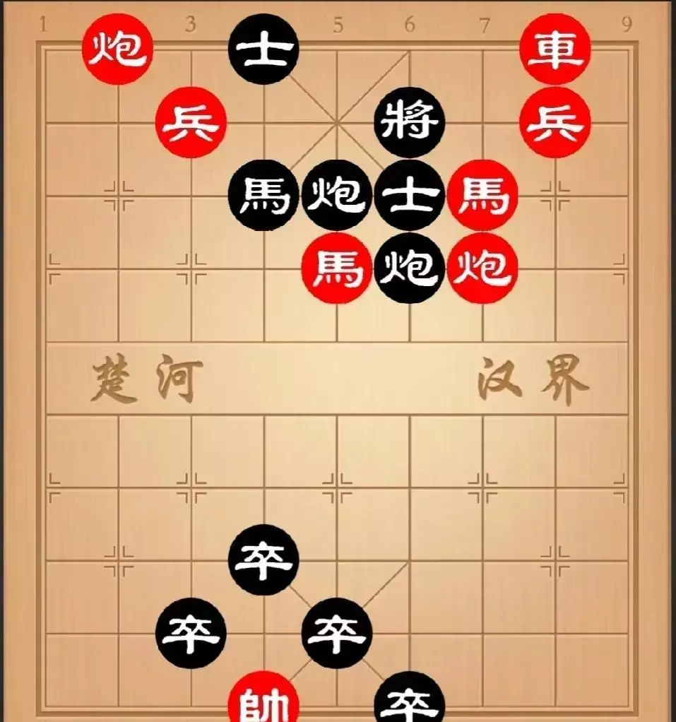 这一节课,我们学习兵(卒)的走法和吃子方法。兵和卒是象棋中棋子数量最多的兵种,每方各有5颗,如图1。象棋中为什么会有五个兵呢?在古代,军队的基本编制是,由五名步兵组成。作战兵器是弓、殳、矛、戈、戟,五种武器配合使用。这五种兵组成的基本战斗编制,反映到当时的浓缩型军事游戏——中国象棋中,便成了红黑双方各有五个兵,五人为一。