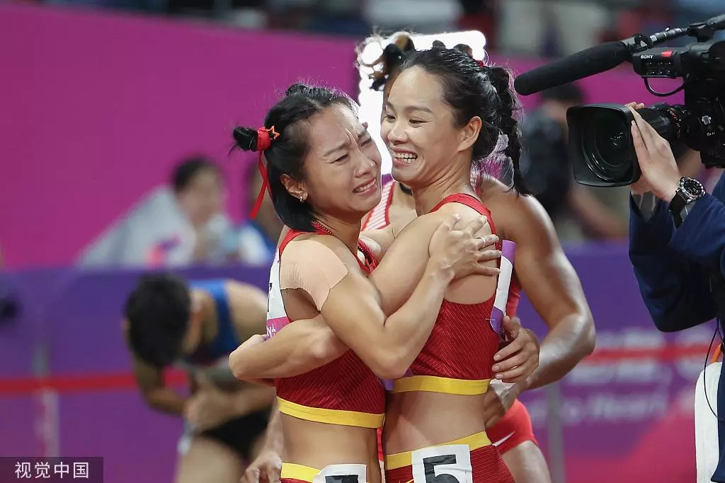 当葛曼棋在终点线处看到她比新加坡“女飞人”佩雷拉快了0.04秒之后,她无比激动地一头扎进“大姐”韦永丽的怀里,哭得梨花带雨。
