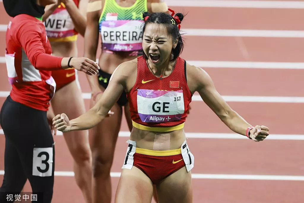 9月30日晚,杭州奥体中心体育场,25岁的葛曼棋以11秒23赢下了个人的第一枚亚运会百米金牌,同时也帮助中国田径在亚运历史上第一次包揽男女百米冠军。