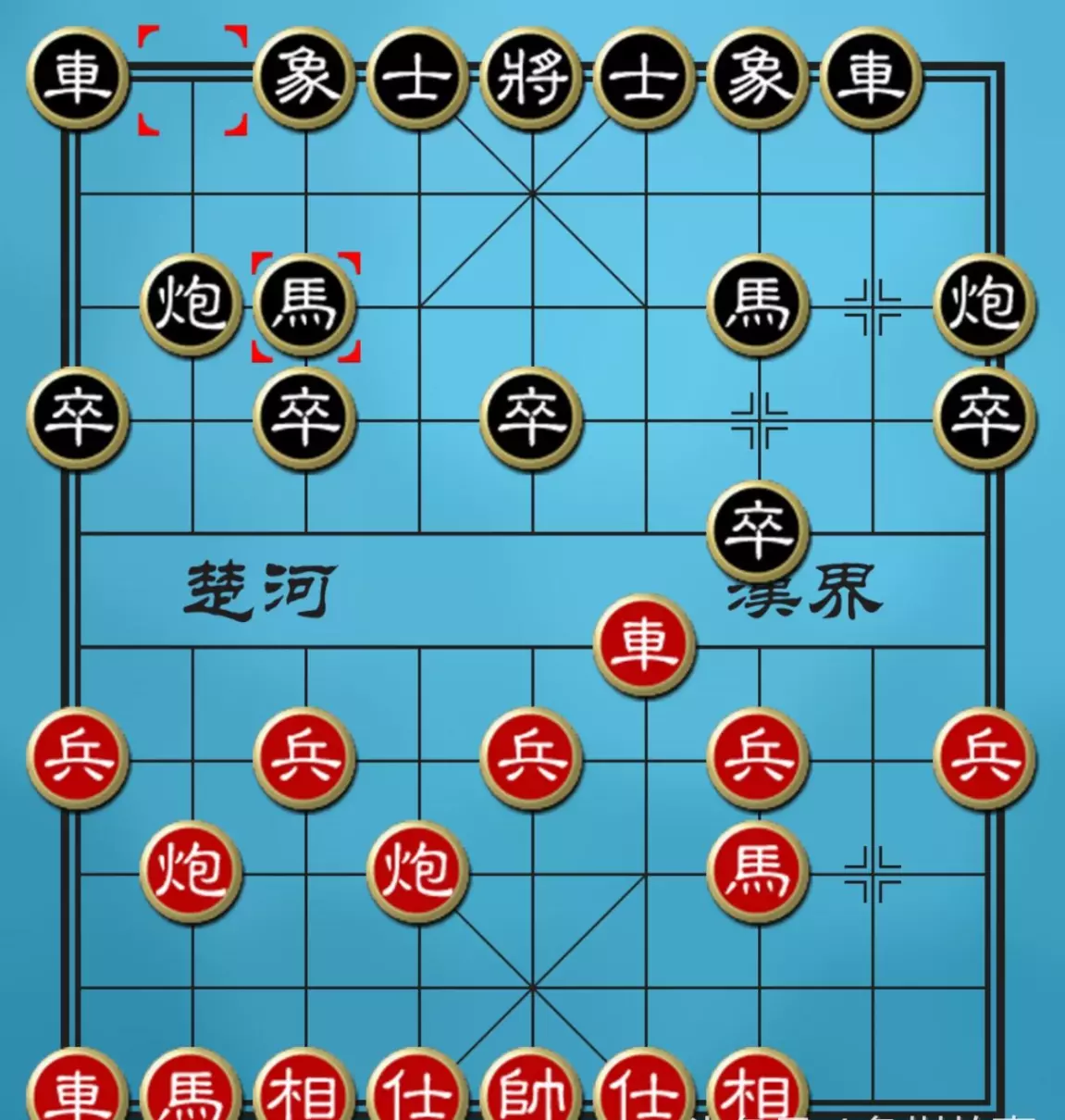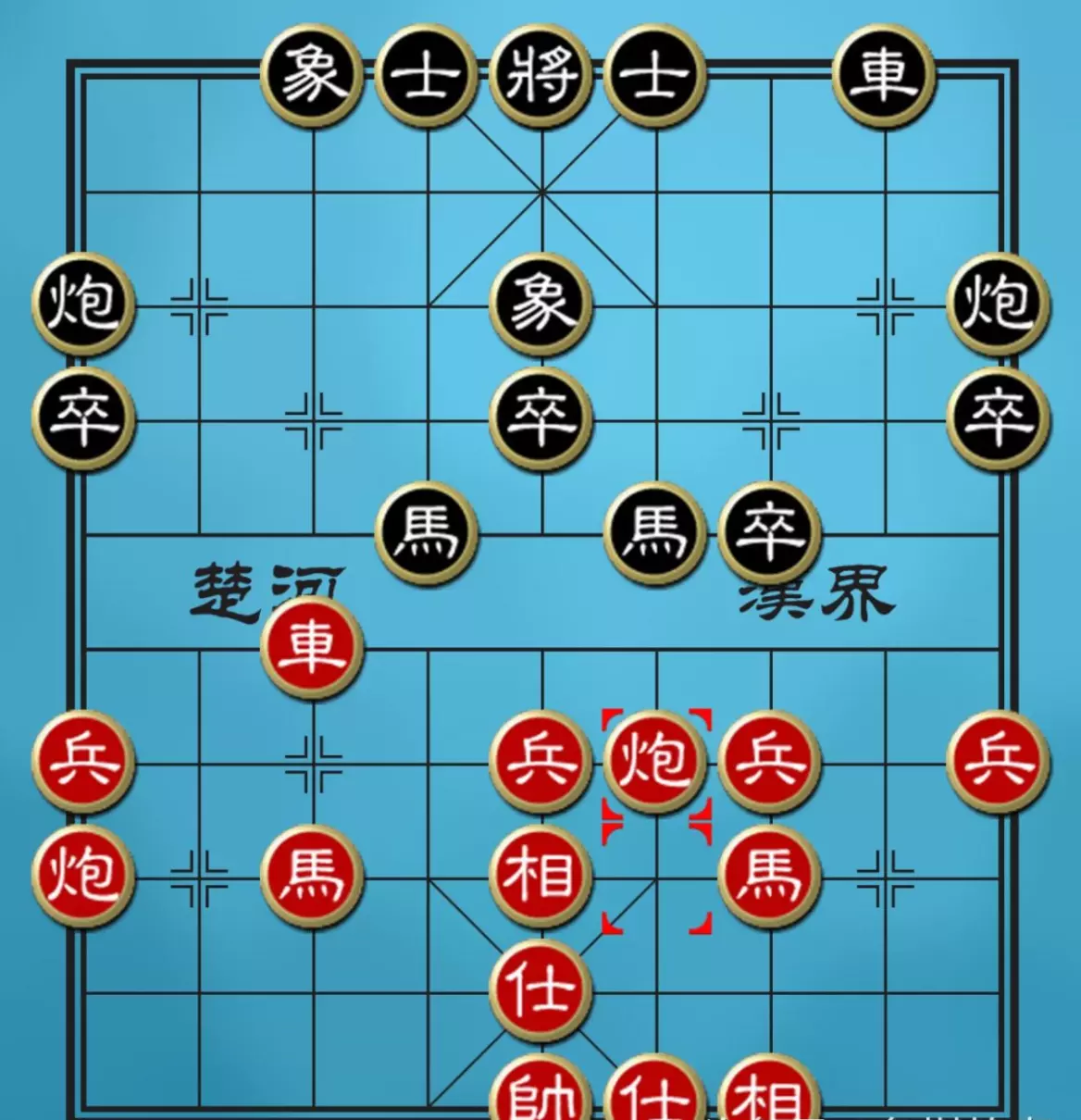 如上图1,红车巡河,掩护后续子力展开,三七路兵都可以挺起来,活通马路。