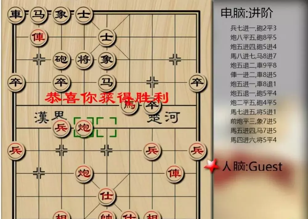 有的玩家在和电脑交手了大概100多局以后,发现电脑的棋路主要有2点。电脑开局喜欢走屏风马。所以开局尽量冲马前兵,不让他中心顺风顺水。电脑的进攻主要围绕着打中兵展开。有一局电脑甚至动用了車马两炮来明抢我的中兵。如果电脑实在抢的太厉害,就不要硬保了。那样会造成出子受限。让他打掉,然后后期慢慢搞他的中炮就可以。