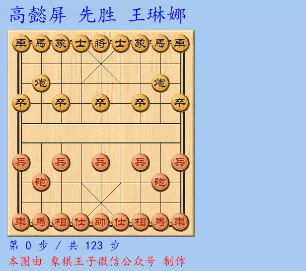双方是局,高懿屏先手选择中炮阵,王琳娜应以起左马,布局红方冲七兵,黑方进7卒。