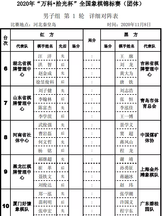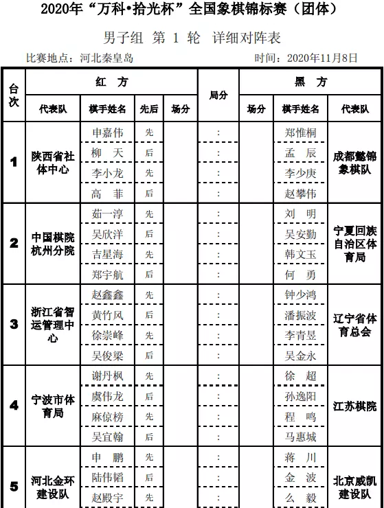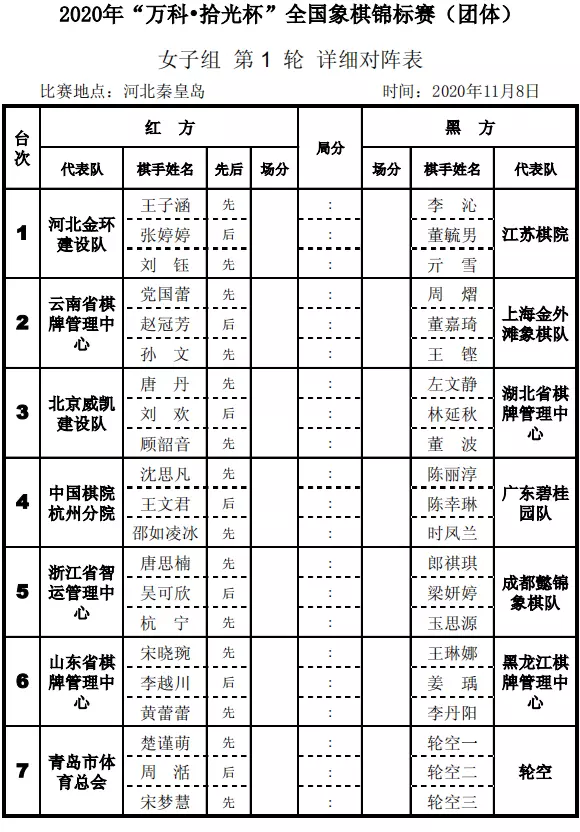 北京时间11月8日至14日,2020年“万科·拾光杯”全国象棋锦标赛(团体)将在河北秦皇岛展开连续七天的超级大战,来自全国各省市豪强的二十支男子队伍,十三支女子队伍,演绎新一轮的全国最强团战火拼,巅峰厮杀,谁主沉浮,新一代团体霸主归于何方,引得无数英雄美女竞折腰。