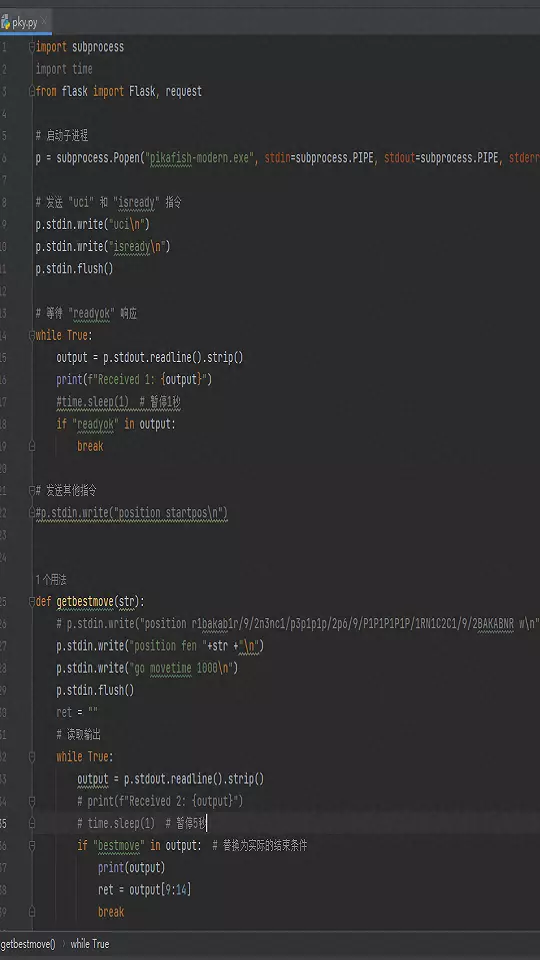 首先,我们需要设置一个后端程序,来提供走法的服务。我们以皮卡鱼引擎为例,介绍如何用Python和Flask框架搭建一个简单的Web服务。