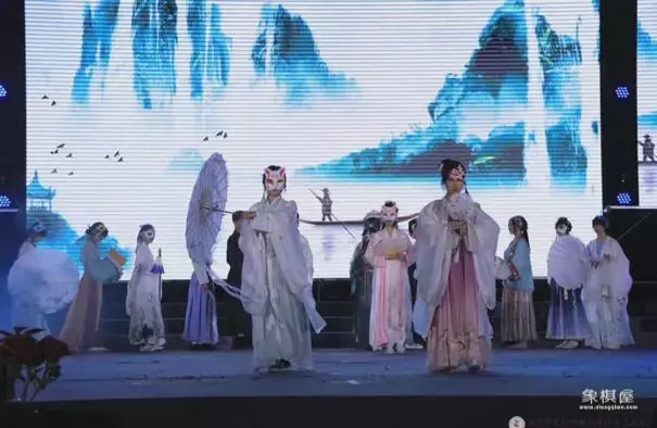 2021年5月27日在“百年圆梦•不忘初心”实外五龙第三届校园文化艺术节文艺汇演与校美术特长队,古筝队合作演出汉服秀《渔舟唱晚》。