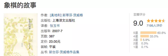 《象棋的故事》是斯蒂芬•茨威格生前发表的最后一部中篇小说。在豆瓣有非常高的评分:9.0。