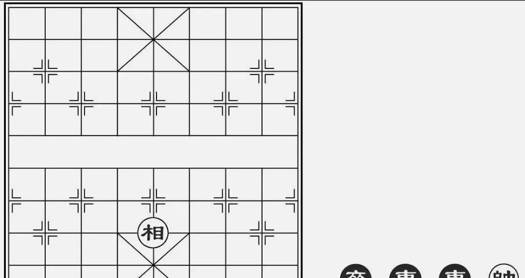 我们在以前讲过,无论是红相还是黑象,都是不能过河的棋子。相(象)的主要作用是防御,在特定的情况下有助攻的作用。相(象)的走法和马的走法有些相似,都是走「斜」线。不过,马走的是「日」字的对角线,而相(象)走的是「田」字的对角线,俗称「相飞田」。