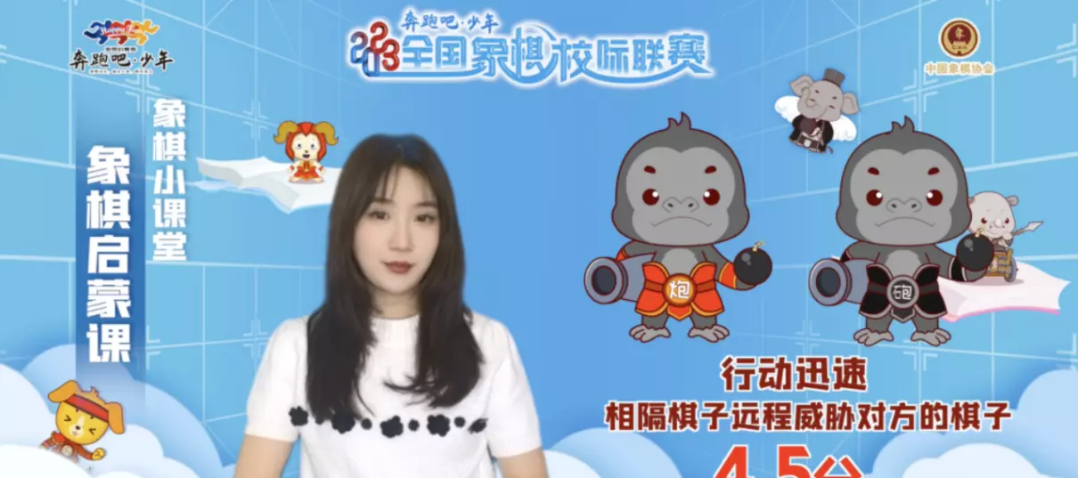 2023年她摇身一变,成为了“奔跑吧·少年”2023全国象棋校际联赛“象棋小课堂”动画启蒙课的主讲老师。打破灌输式、填鸭式的传统教学,她以低幼年龄层喜爱的话语表达机制结合动画内容的形式,让整个课程富有亲和力与感染力,同时也赢得了众多象棋特色校老师和学生的认同和喜爱。