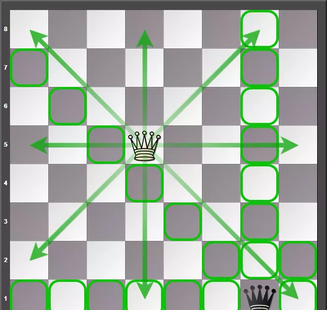 后是国际象棋中威力最大的棋子,从立体棋子的造型上看,后比除王以外的任何棋子都要高。后的走法结合了车和象的走法,他能唱任何方向沿着他所在格的横线竖线斜线走棋,格数不受限制,但是不能在中途改变方向,也不能越过挡路的棋子。