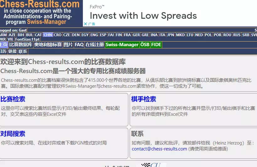 强大的专用比赛成绩服务器网站,其所包含的比赛档案包含了世界世界各地比赛的配对和成绩查询,网站同国际象棋比赛配对管理软件Swiss-Manager合作,对外发布全面完整的比赛信息,是查询棋手比赛成绩的好工具。