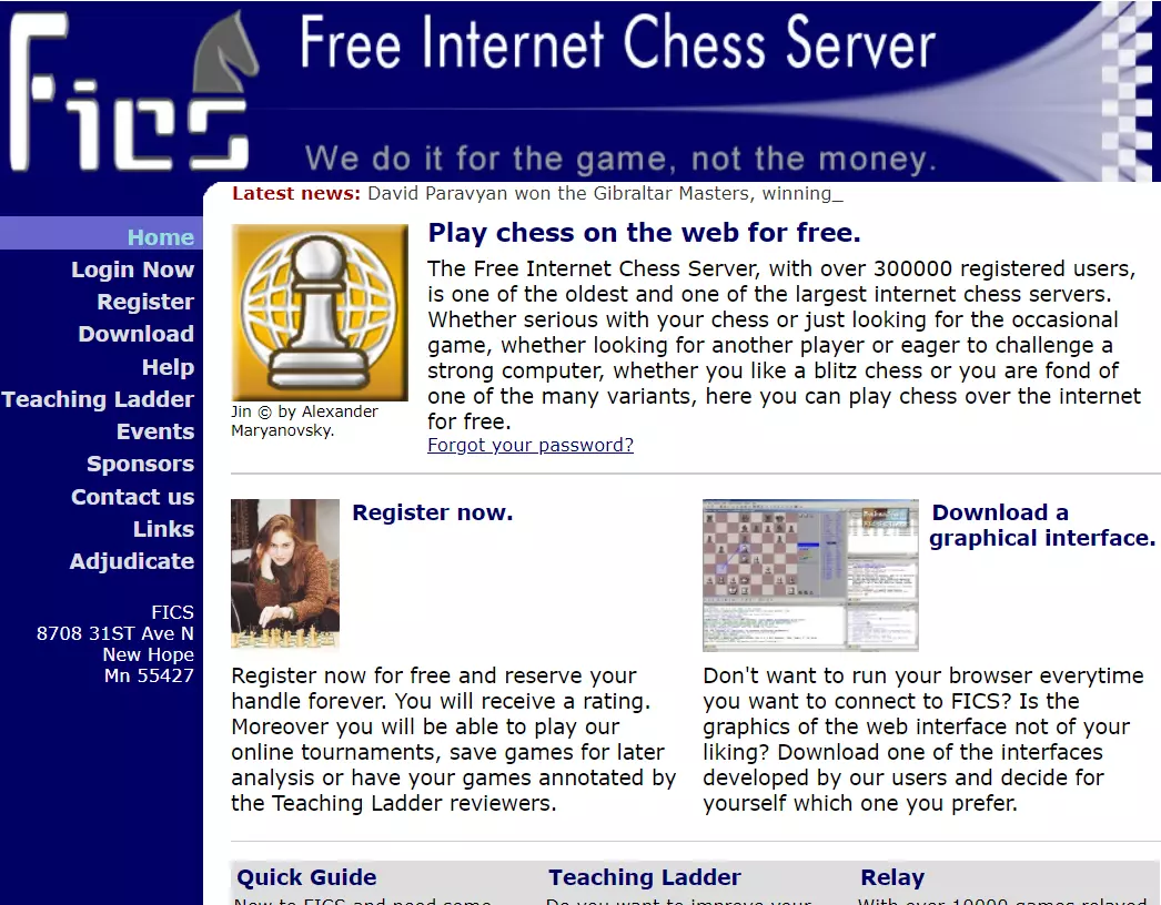 世界上最早的国际象棋网站,包括残局研究、国际象棋图书评论、详细的开局分析等,网站还收集每天世界各国的有关国际象棋报道并提供网络链接索引。