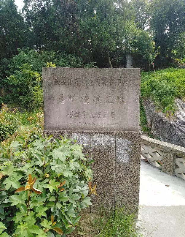 小沟的北岸,有一块天然形成的巨石,人们就地取材,在上面凿了很多台阶,拾级而上,可见一块石头,石头侧面方正,刻着两个很大的两个隶体字“檀溪”。石头表面久经风雨侵蚀,倍显沧桑,应为古代所刻。