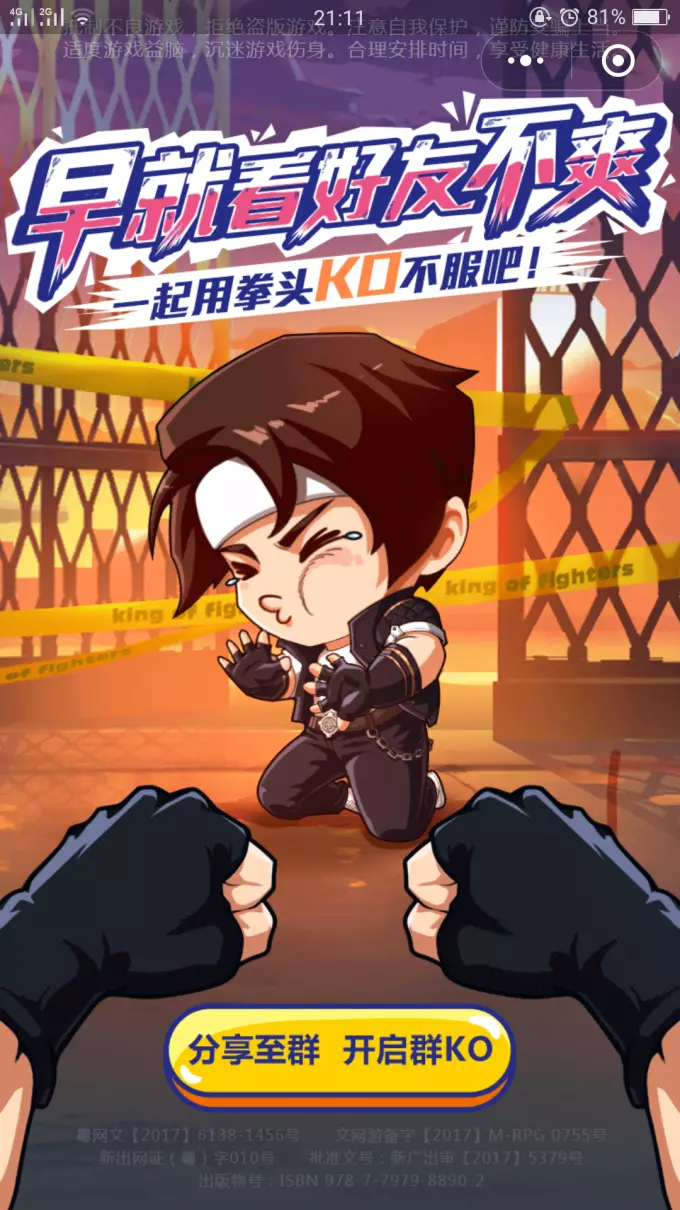 ⑸拳皇命运:拳皇!大家玩过吧?小时候的经典啊!KO两个字的音效到现在都还能清楚记得呢!历历在目的那些PK人物,《拳皇命运》是由腾讯游戏独家发行,银汉游戏倾力打造的SNK正版授权格斗手游!经典街机还原,连招翻滚一币通关!实时公平竞技,跨服KOF争霸,冲击至尊拳皇!人气格斗家全集结,自由组建最强战队,与好友一键开黑,随时随地KO!