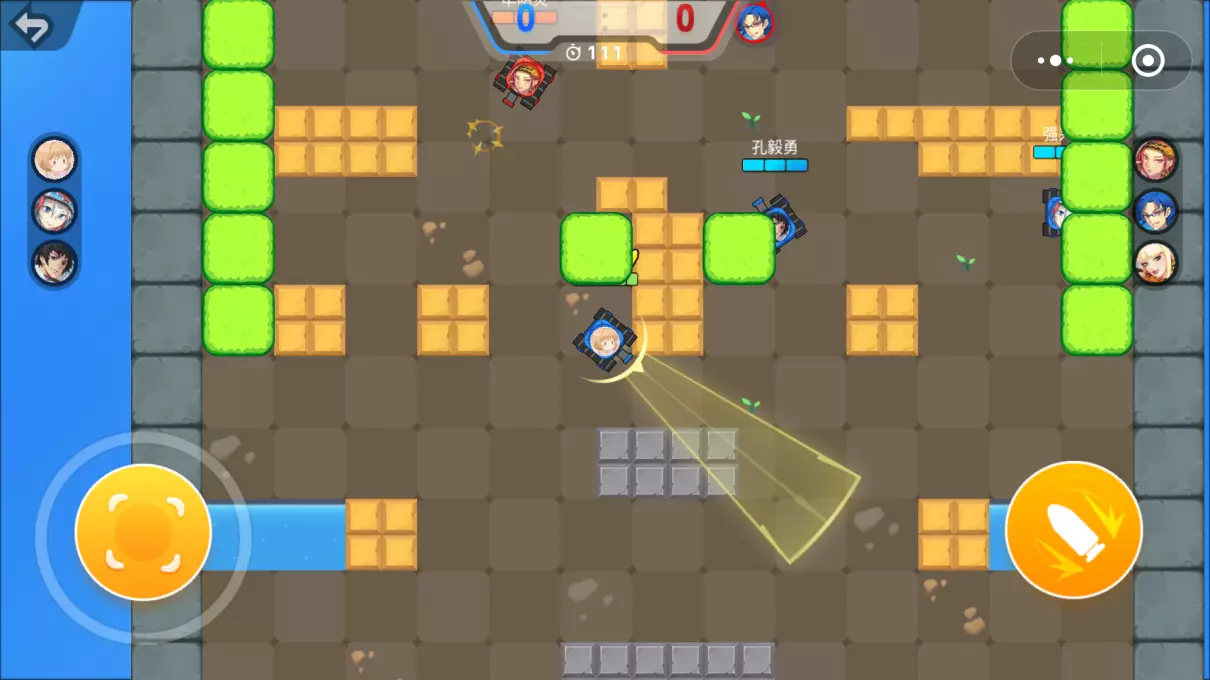 ⑴欢乐坦克大战:童年的回忆啊!微信小游戏《欢乐坦克大战》基本上延续了原本《坦克大战》的玩法。不过在画面上可是要比儿时经典游戏的画面精良了太多,并且作为腾讯出品的游戏,这款微信小游戏《欢乐坦克大战》也比其他的微信小游戏画面要好很多。在屏幕上有两个操控坦克移动和发射的按钮,操纵坦克打败敌人,击毁敌方基地就赢啦!