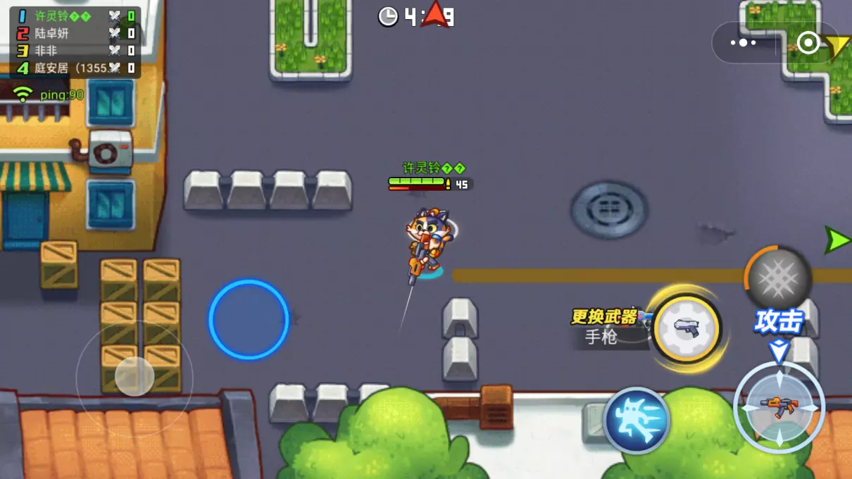 ⑵欢乐枪战:与欢乐坦克大战都是竞技类的游戏,不过这个游戏用的是枪哦!还可以更换武器!可以闪现!游戏人物可以选择猫或者狗,跟坦克比起来,也有它很好玩的地方!大家可以试一下噢!