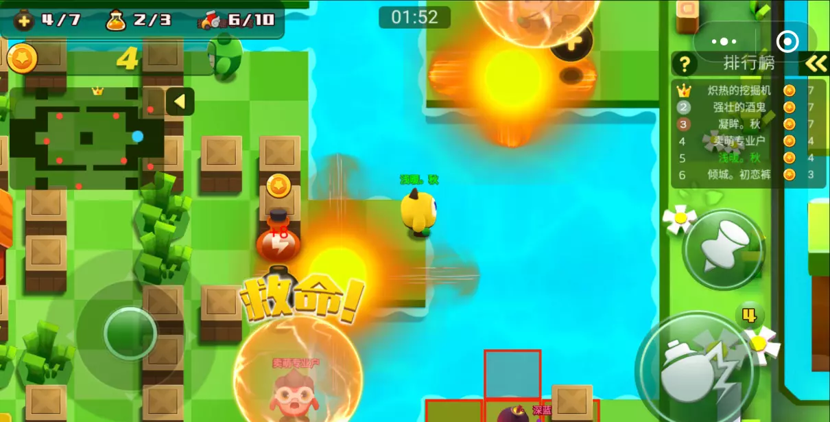 ⑶泡泡人大作战:不知道大家以前是否玩过泡泡堂的游戏呢?哈哈其实很像噢!又是一个童年的回忆啊!这是一款极具挑战性的休闲游戏。玩家通过战略性地放置炸弹,可以击败其他玩家和摧毁障碍,击败玩家的同时还能获得更多的道具。经典炸弹人玩法,等你来体验!